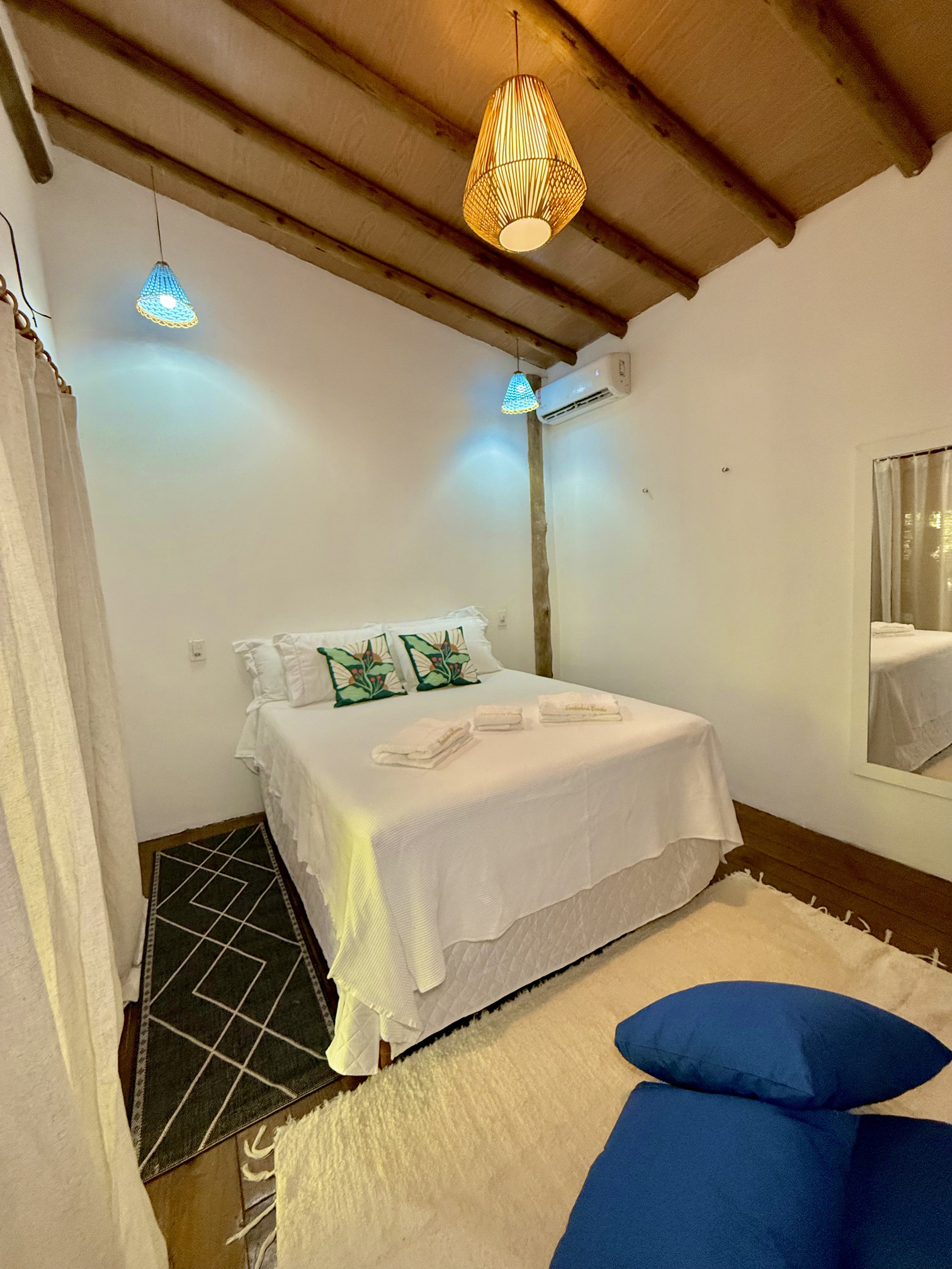 Cada acomodação foi cuidadosamente projetada para proporcionar o equilíbrio perfeito entre o charme rústico de Caraíva e o conforto moderno que você merece.